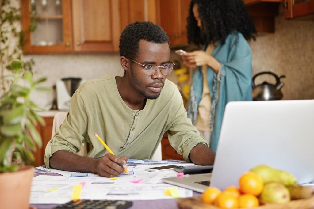 Mini‑Gewohnheiten wie „fünf Minuten Finanzcheck am Freitag“ bauen Vertrauen auf. Erkennen Sie Trigger für Impulskäufe und ersetzen Sie sie mit Alternativen. Teilen Sie ein Experiment, das Sie überrascht hat, und was Sie daraus gelernt haben.
